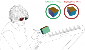 1) Get stereo image working, currently showing two images unless glasses are off/glasses are on with one eye closed. **fixed** A simple restart of the computer fixed this issue, surprisingly enough. Next I will try to add an object to the world builder application and see if the 3d effect is working.