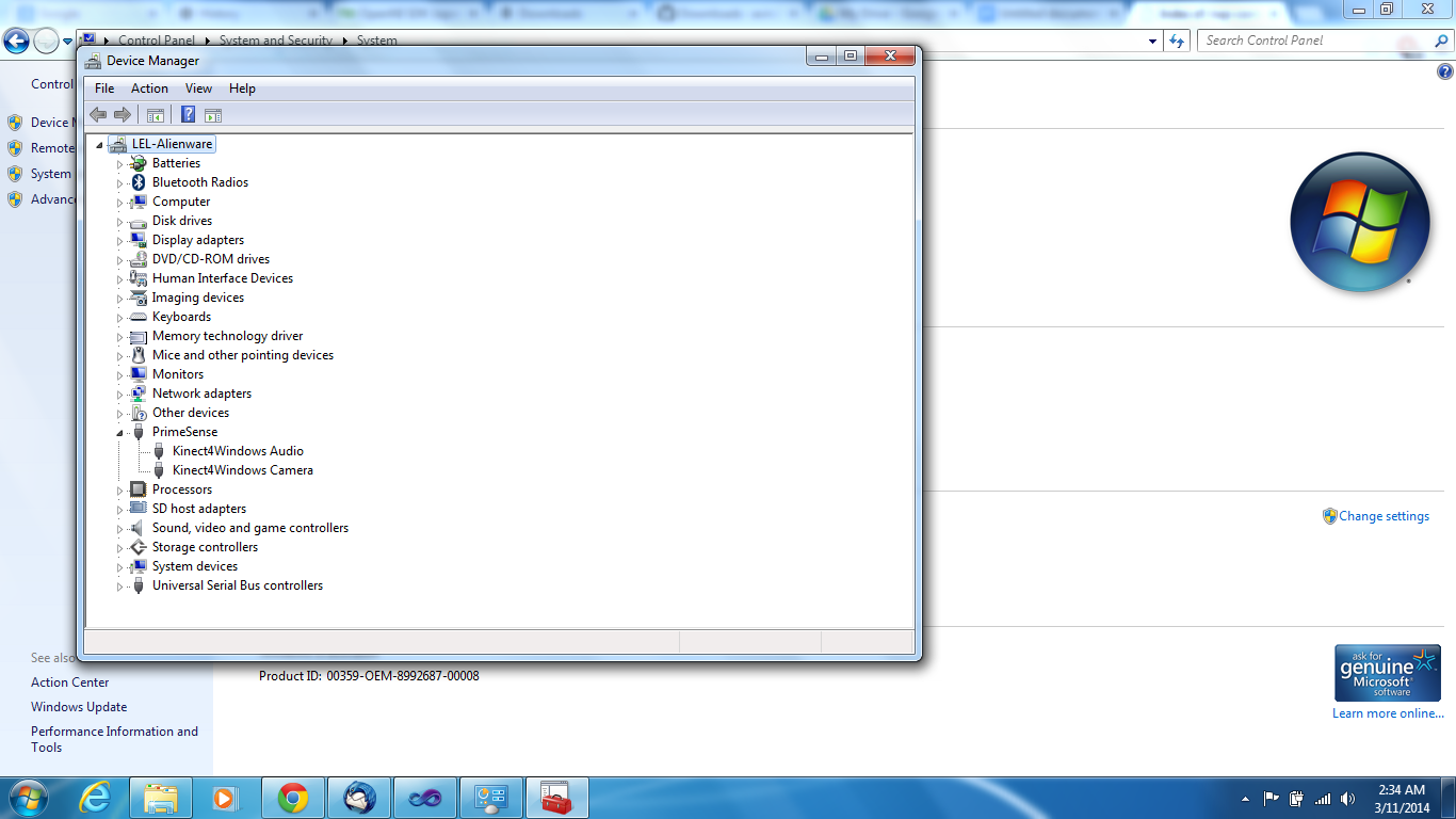 Okay, this is where it gets tricky. You need one (and only one) type of driver for the Kinect. Since we are going to stick to OpenNI, Do not try installing Microsoft Kinect SDK or KinFu.