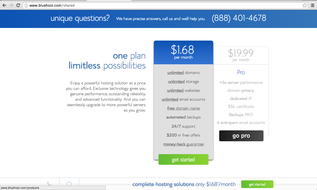 Looking into renting my own little piece of the internet… I am faced with a number of options. Bluehost is very inexpensive (they have a promotion for $1.68/month for the first year) but various reviews complain of extensive lag and difficulties getting issues resolved. I know that people are much more likely to give a bad review than a good one, so the representation is probably disproportionate. Other review sites give it a generally decent rating, and they claim unlimited storage (but not really).