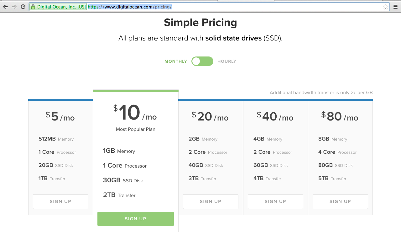 Digital Ocean (showing 1 GB RAM and 30 GB SSD space)