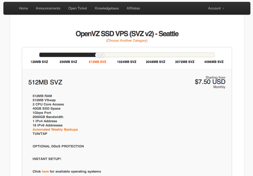 RamNode (showing 512MB RAM, and 40 GB SSD)