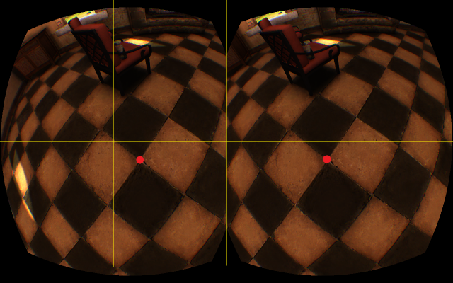 I changed our code to match — and the difference was striking. Full stereo fusion came naturally, and general visual acuity and awareness of the scene was improved. And so was awareness of a whole host of new flaws in the scene — the lack of multisampling and screen door effect were much more apparent, tracking errors more annoying, and errors in recreations of realistic scenes far more in focus. It’s interesting how thoroughly the distortion misalignment dominated those other visual artifacts.