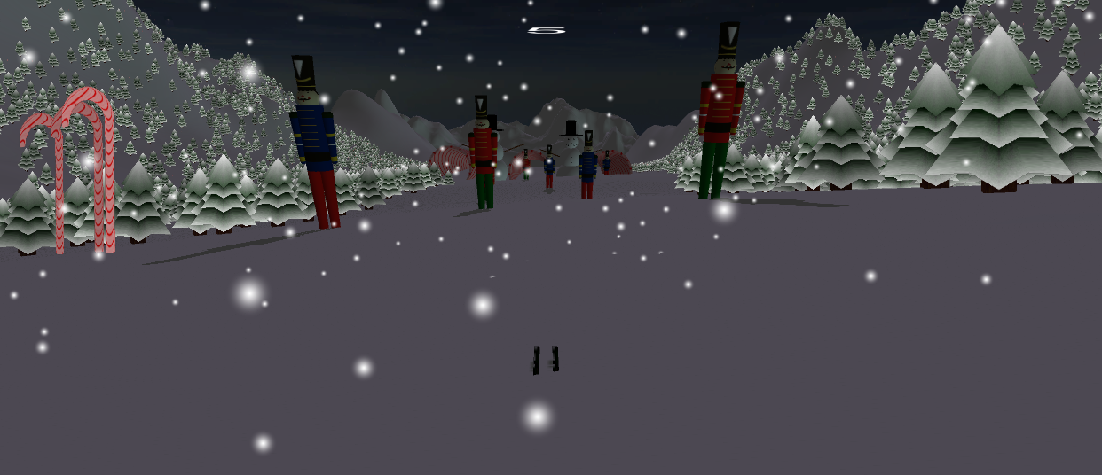 This week I focused on finishing the toy soldiers and adding them to the simulator. I also made some simple building models and textures for the bottom of the hill. I added some large snowmen models near the candy cane tunnels and some particle systems in the candy cane forest.