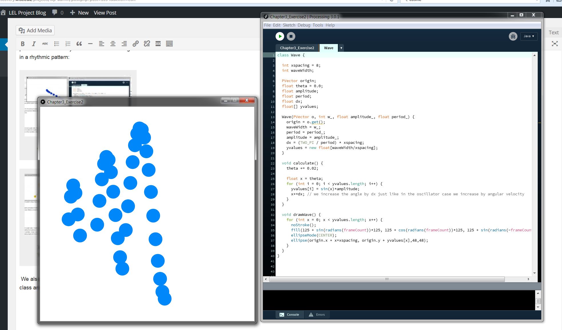 We also looked at waves. The exercise I did required me to encapsulate a wave into a class and create a pattern:
