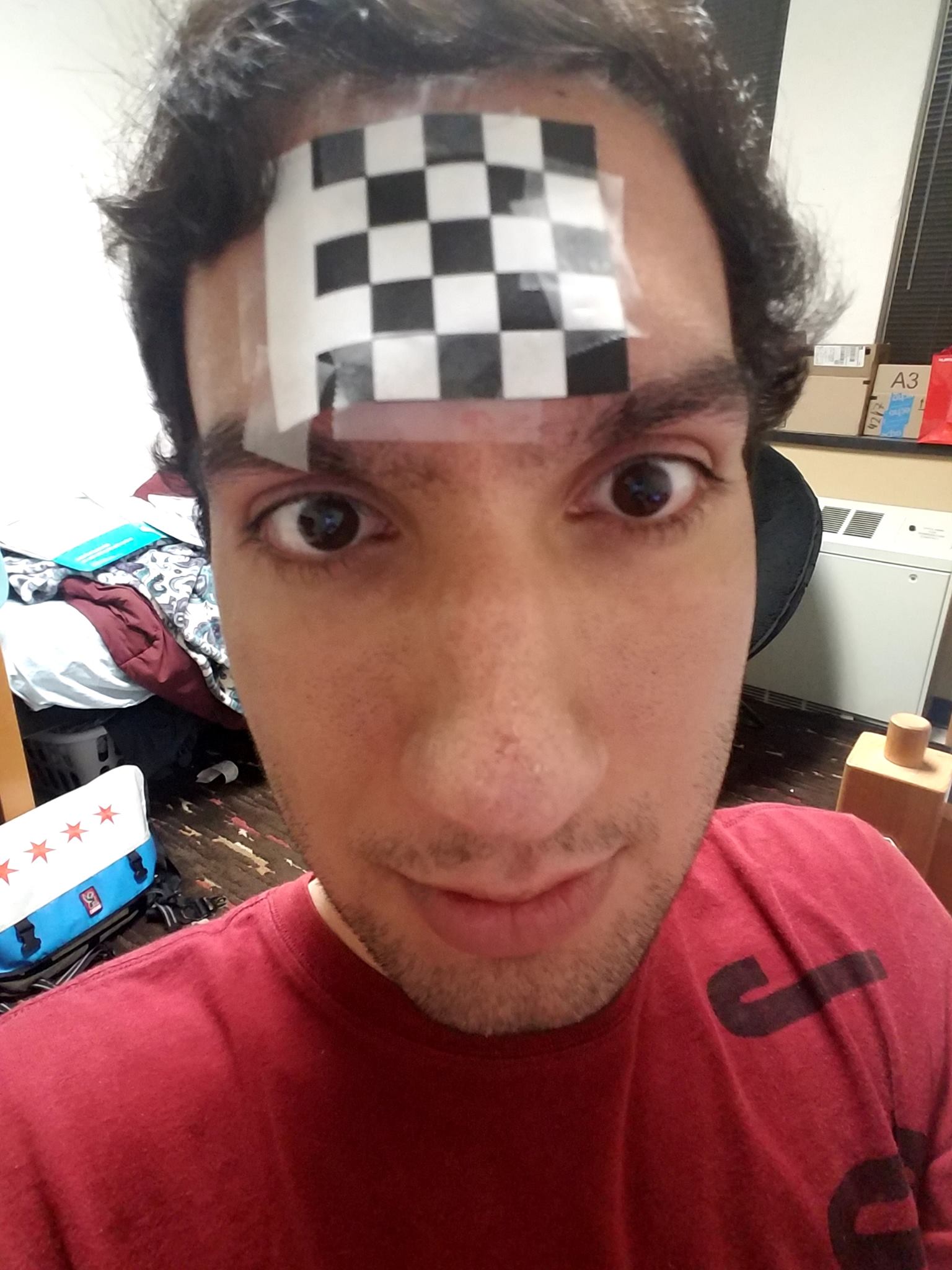3×3 was the largest that I could get to fit on my forehead, so I decided to get a printout of a chessboard with smaller square sizes, and cut out a 5×5 piece to test it as 4×4 and this is the outcome: